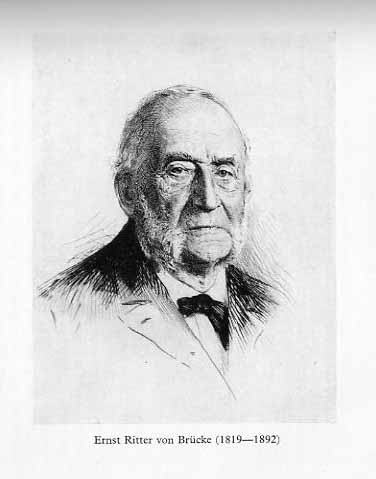 Brücke wohnte zunächst im Josephinum in der Währinger Straße, dann in der Alten Gewehrfabrik am Glacis, wo das Institut untergebracht war. Dessen Ausstattung war armselig genug, es gab weder Gas noch Wasser; dieses mußte vom Institutsdiener heraufgebracht werden. Aber das Genie Brückes überwand alle Schwierigkeiten. Das Institut, das während seiner Wirksamkeit zweimal vergrößert wurde, wurde die Wiege der Wiener physiologischen Schule. Die bedeutendsten Ärzte sind durch dieses Institut gegangen.