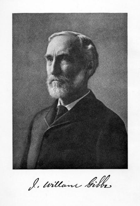 The subject of this memorial was the fourth child and only son of Josiah Willard Gibbs, Professor of Sacred Literature in the Yale Divinity School from 1824 to 1861, and of his wife, Mary Anna, daughter of Dr. John Van Cleve of Princeton, N.J. The elder Professor Gibbs was remarkable among his contemporaries for profound scholarship, for unusual modesty, and for the conscientious and painstaking accuracy which characterized all of his published work. The following brief extracts from a discourse commemorative of his life, by Professor George P. Fisher, can hardly fail to be of interest to those who are familiar with the work of his distinguished son: "One who should look simply at the writings of Mr. Gibbs, where we meet only with naked, laboriously classified, skeleton-like statements of scientific truth, might judge him to be devoid of zeal even in his favorite pursuit. But there was a deep fountain of feeling that did not appear in these curiously elaborated essays. ... Of the science of comparative grammar, as I am informed by those most competent to judge, he is to be considered in relation to the scholars of this country as the leader." Again, in speaking of his unfinished translation of Gesenius's Hebrew Lexicon: " But with his wonted thoroughness, he could not leave a word until he had made the article upon it perfect, sifting what the author had written by independent investigations of his own."